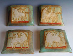 decorated with oxides, under glaze, glaze.